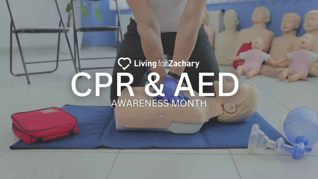 If you are looking for ways to show your support during CPR and AED Awareness Month, there are several ways to give to Living for Zachary. From now until June 23rd, you can purchase a limited edition Heart Strong Summer shirt for $20. All proceeds come back to Living for Zachary. To give a direct gift, donate here. We are always looking for passionate volunteers to serve the organization. If this is you, visit our volunteer website to see what opportunities are available.